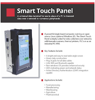 According to John, “ The Smart Touch Panel is a powerful, single board computer, running on open source Linux. The Smart Touch Panel is ideally suited for data collection over networks with barcode scanners, printers, or PLC’s.” In our case, it’s great with the new C6000P printers.